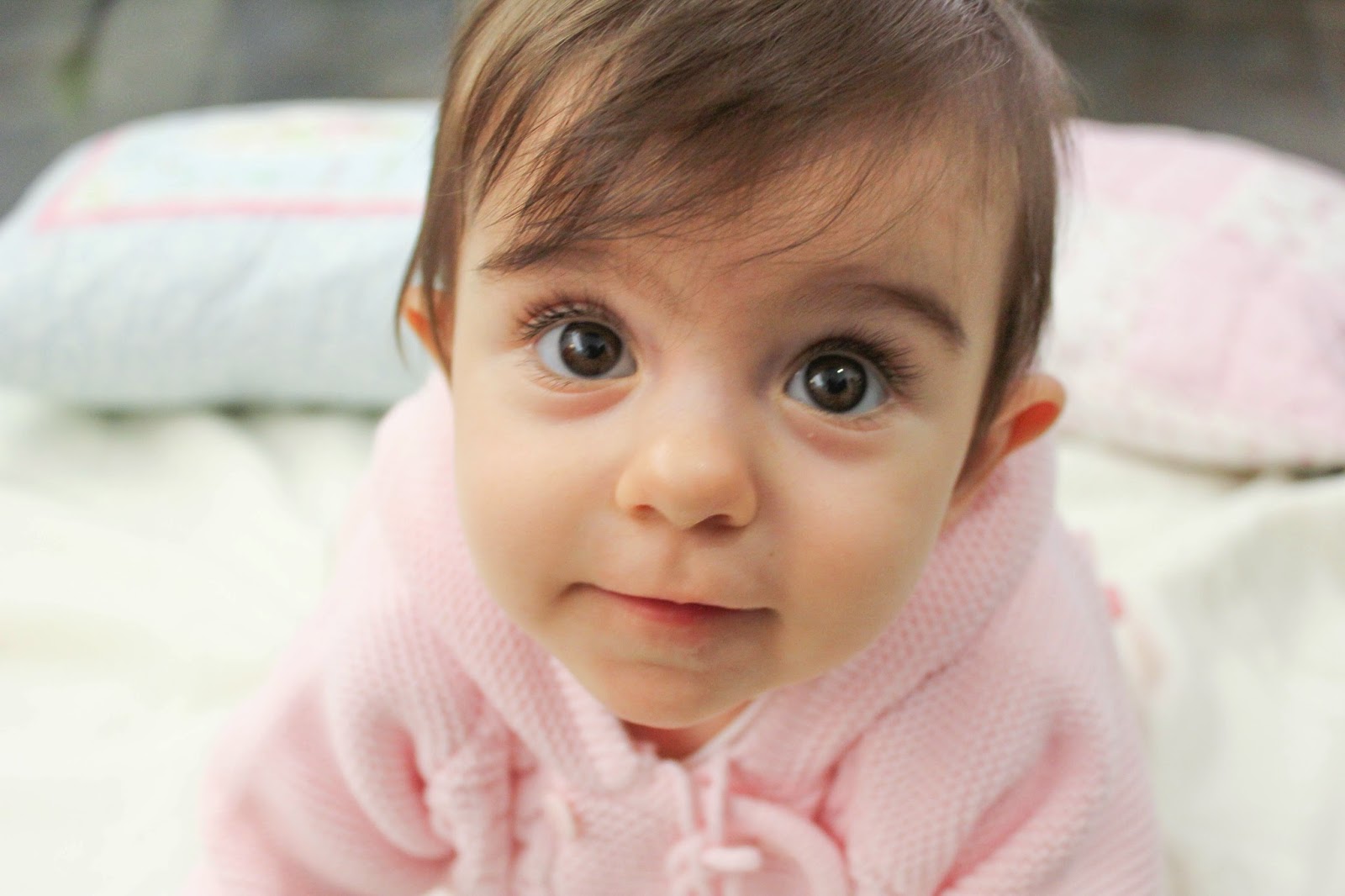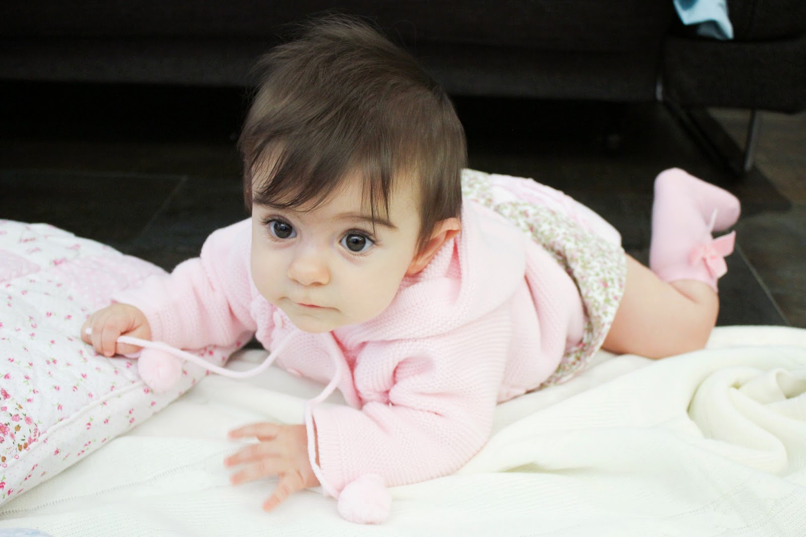 Esta semana gatinha já com um à-vontade incrível. E é tão mexida que ainda não consegui tirar-lhe uma fotografia que ficasse focada. Faz olhinhos lindos e expressões novas. Tenta ser engraçada e chamar a atenção com sons novos. Voltou a acordar durante a noite, umas cinco vezes. Acorda às 6h da manhã pronta para o dia. Põe-se de joelhos agarrada a tudo, abre gavetas e adora ficar de pé, toda desengonçada. Falta uma semana para os 8 meses e quando faço estas contas nem acredito.